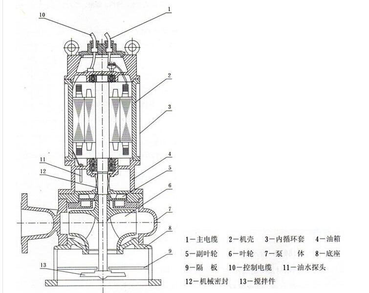 JYWQ自動攪勻無堵塞排污泵結構圖