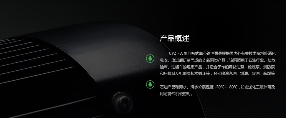 2、CYZ-A型自吸式離心輸油泵是選用優(yōu)質(zhì)材料精制而成,密封采用硬質(zhì)合金機械密封,經(jīng)久耐用,吐出管路不需要安裝安全閥,吸人管路不需安裝底閥,因此簡化了管路系統(tǒng),只改善了勞動條件.