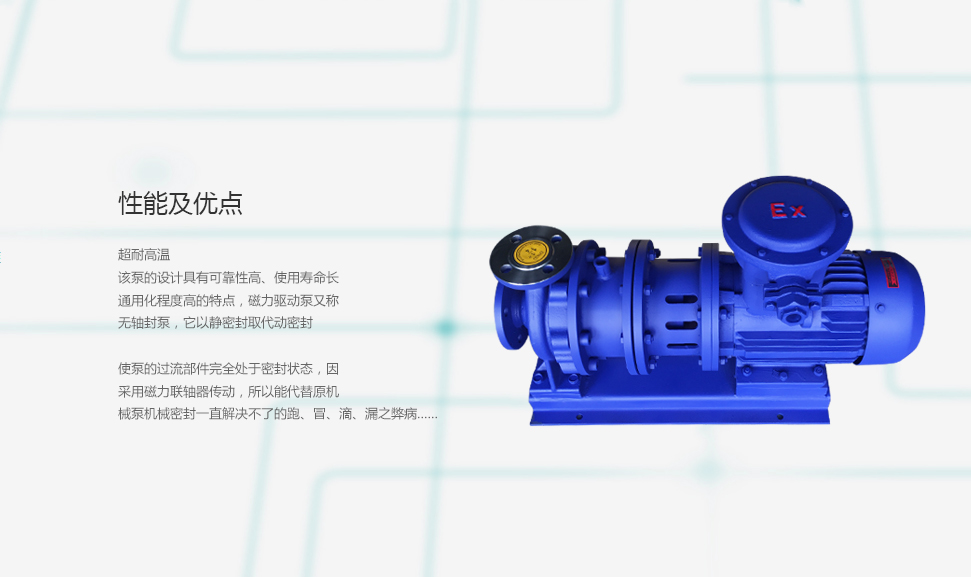 CQB-G 系列磁力泵適用與石油、化工、制藥、冶煉、電鍍、環(huán)保、食品、影視洗印、水處理、國防等行業(yè)。 是輸送高溫類易燃、易爆、揮發(fā)、有毒、稀有貴重液體和各類腐蝕性液體的理想設(shè)備。適用與輸送Z大系列工作壓力1.6Mpa,溫度不超過280度,密度不大于1840kg/m3,粘度不大于30cm/s的不含硬顆粒和纖維的液體。