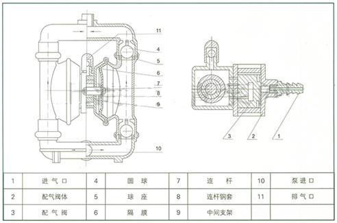 QBY第三代工程塑料隔膜泵剖解圖